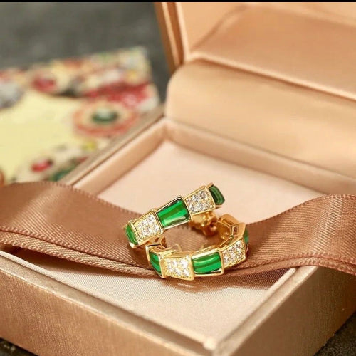 The BVLGARI Serpent Diamond Studded Earrings are a bold symbol of elegance, power, and timeless luxury. Inspired by the iconic serpent motif, these earrings feature intricate curves adorned with sparkling diamond-style stones that create a dazzling, high-fashion statement.