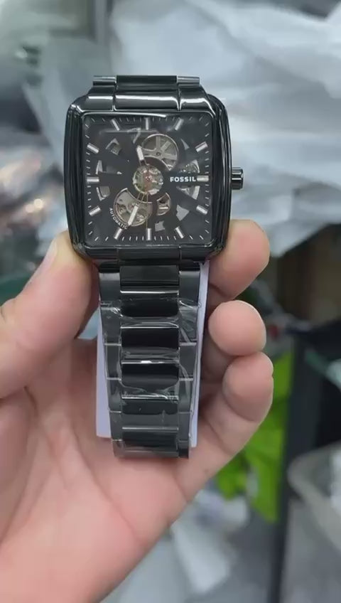 Fossil Men's Inscription Rectangle Shape Analog Wrist Watch